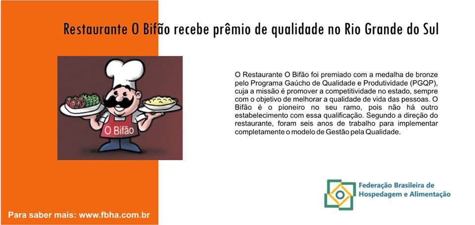 FBHA: Restaurante O Bifão recebe Prêmio de Qualidade no Rio Grande do Sul