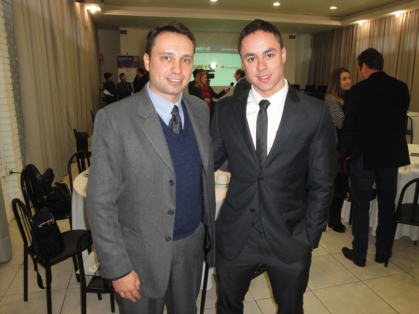 O parque de exposições da Fenac, em Novo Hamburgo, receberá pelo terceiro ano consecutivo a Construsul – Feira Internacional da Construção. Na 18ª edição do evento, que ocorre de 5 a 8 de agosto, foi confirmado na terça-feira (23.06) pela manhã um recorde na participação de expositores: serão 564, ocupando uma área de 31 mil metros quadrados. “É muito bom termos esse evento sendo realizado novamente em Novo Hamburgo. É uma cidade que sabe fazer feiras e receber visitantes”, destacou Paulo Richter, um dos diretores da Sul Eventos, responsável pela promoção. “Quando existe uma crise, as empresas vêm a uma feira para gerar oportunidades de negócios”, completou. Além da Construsul, acontecerá simultaneamente a 10ª ExpoMáquinas – Feira de Máquinas e Equipamentos para Construção. O presidente do SindGastrHô, César Silva, prestigiou o evento e, na foto, aparece com Ricardo Richter, da Sul Eventos. O sindicato é parceiro oficial da Construsul.