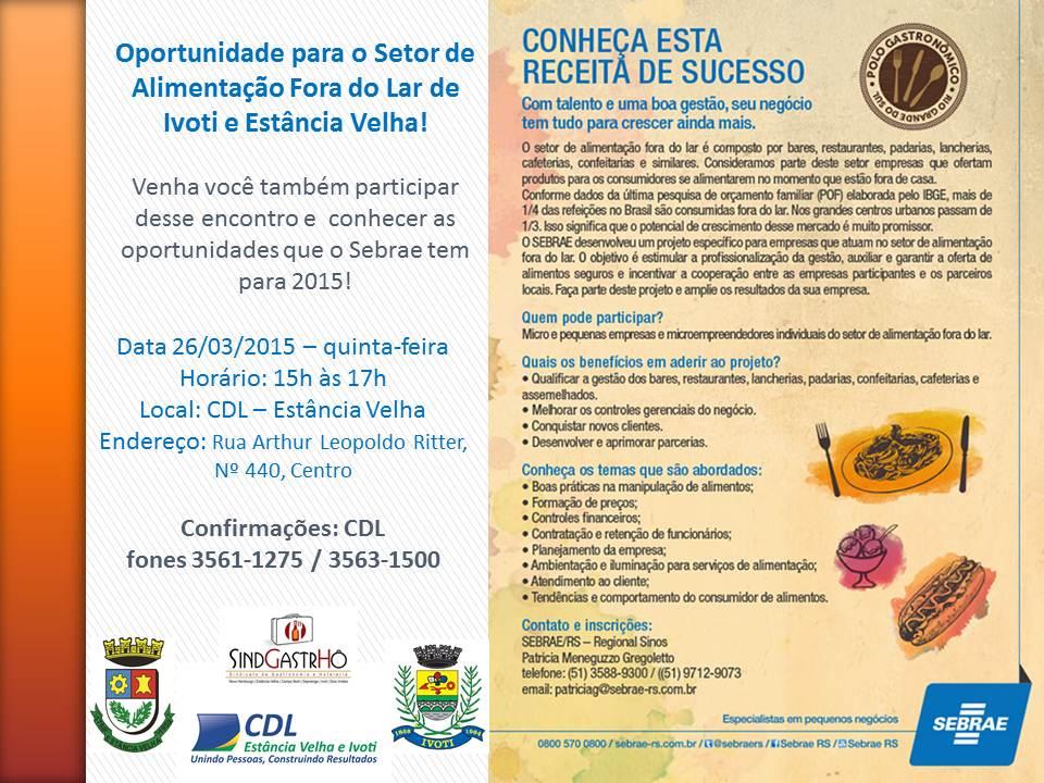 Oportunidade para o Setor de Alimentação Fora do Lar de Estância Velha e Ivoti - 26/03/2015 - 15h - Local: CDL EV/IV
