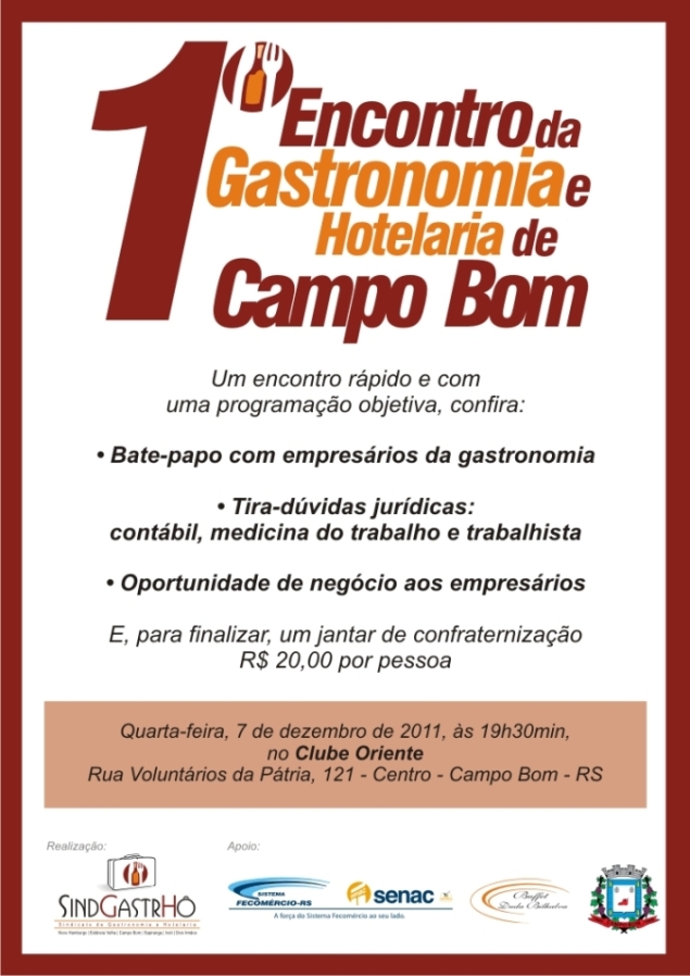 - Primeiro Encontro da Gastronomia e Hotelaria de Sapiranga - 25/07/2012 - 19h