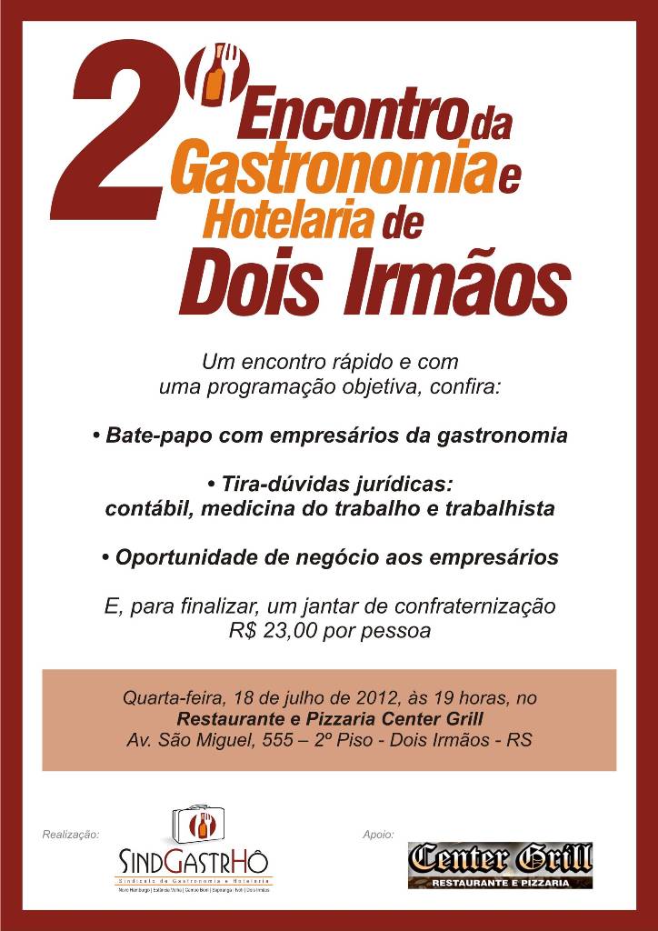 - Primeiro Encontro da Gastronomia e Hotelaria de Sapiranga - 25/07/2012 - 19h