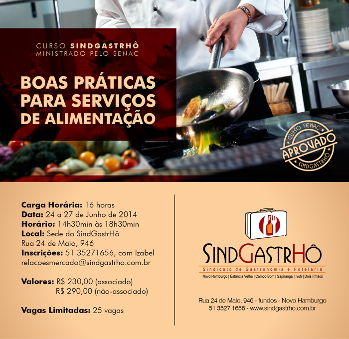 Curso de Boas Práticas de Fabricação - 24 a 27/06 - Sede do SindGastrHô - Vagas Limitadas!