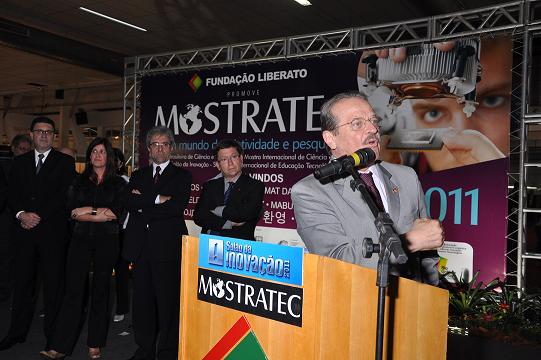 A cerimônia de abertura da Mostratec – Mostra Brasileira de Ciência e Tecnologia e Mostra Internacional de Ciência e Tecnologia, do Siet – Seminário Internacional de Educação Tecnológica e do Salão da Inovação, aconteceu nesta terça-feira (25), na Fenac, em Novo Hamburgo (RS), e contou com a presença de diversas autoridades governamentais, empresarias e comunitárias, entre elas: o Prefeito/NH, Tarcísio Zimmermann, o Secretário da Educação/RS, Jose Clovis de Azevedo, o Secretário da Ciência, Inovação e Desenvolvimento Tecnológico/RS, Cleber Prodanov, o Presidente do Banrisul, Túlio Zamin, o presidente da CEEE, Sérgio Souza Dias, o Presidente do Conselho Técnico Deliberativo da Fundação Liberato, Pedro Luiz Maboni, a Diretora Executiva da Liberato, Maria Inês Utzig Zulke, o Diretor-Presidente da Fenac, Elvir Desian, a Coordenadora da Mostratec 2011, Marlene Teixeira, o Coordenador do 18º Siet, Irineu Ronconi, o Presidente da Associação de Pais e Mestres (APM), André Thozeski, entre outros.