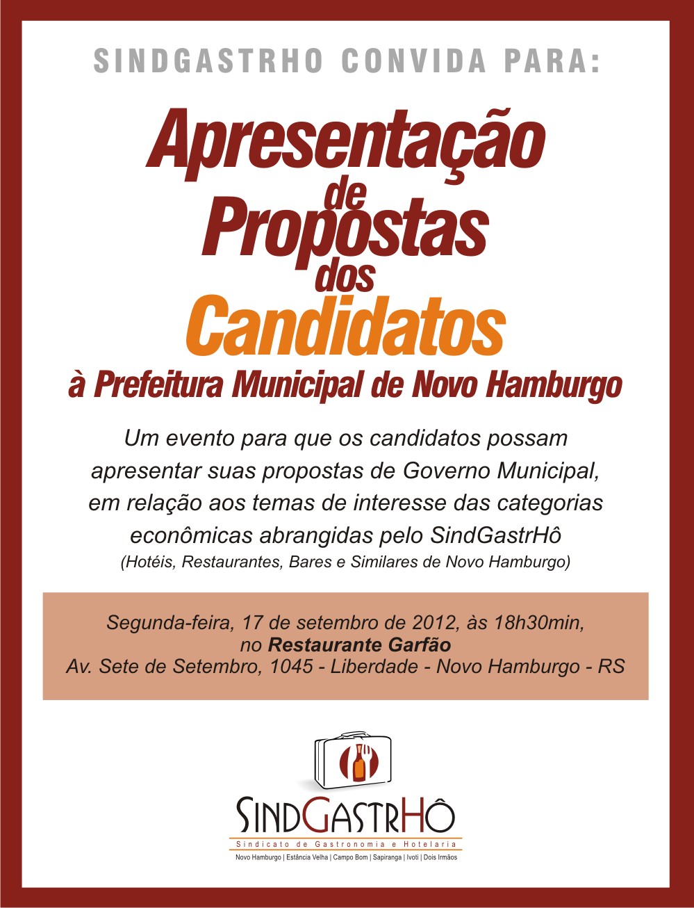 Convite SindGastrHô: Apresentação de Propostas dos Candidatos a Prefeito Municipal de Novo Hamburgo