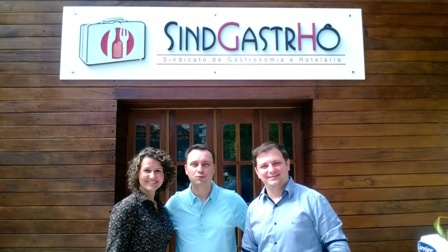 Novo Hamburgo- O Presidente do SindGastrHô, César Silva, e o Diretor de Restaurantes do Sindicato Cleoni Meneggethi receberam nesta quarta-feira, dia 11, a Diretora do Senac Novo Hamburgo, Viviane Bertholdi na nova sede do sindicato, Rua 24 de Maio, 946, fundos, Novo Hamburgo.